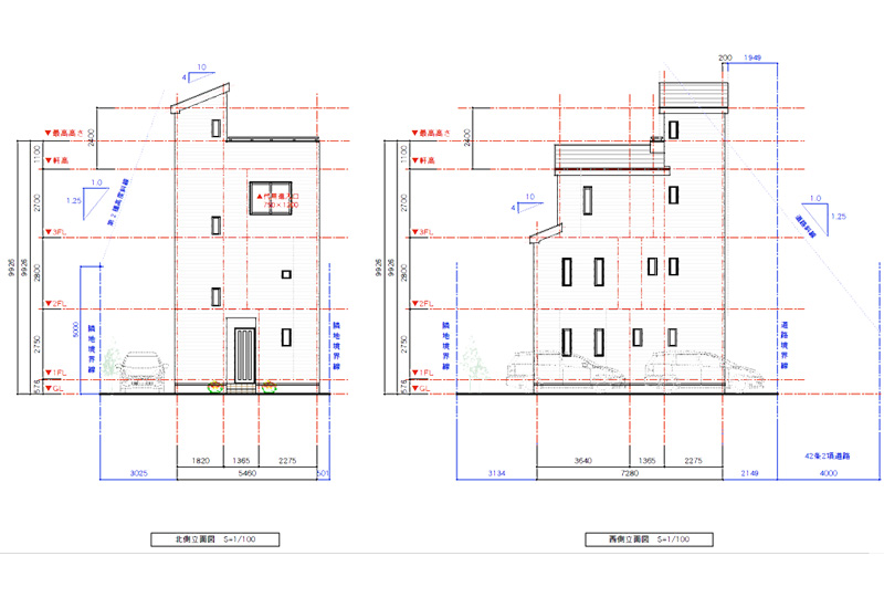 シューズクロークと20帖のリビング。駐車場が2台というのも素敵ですね。